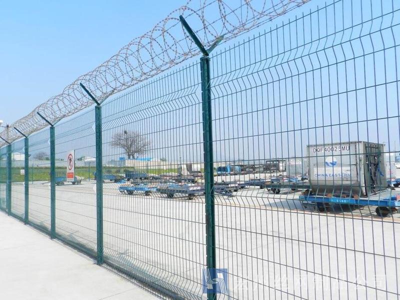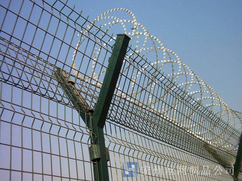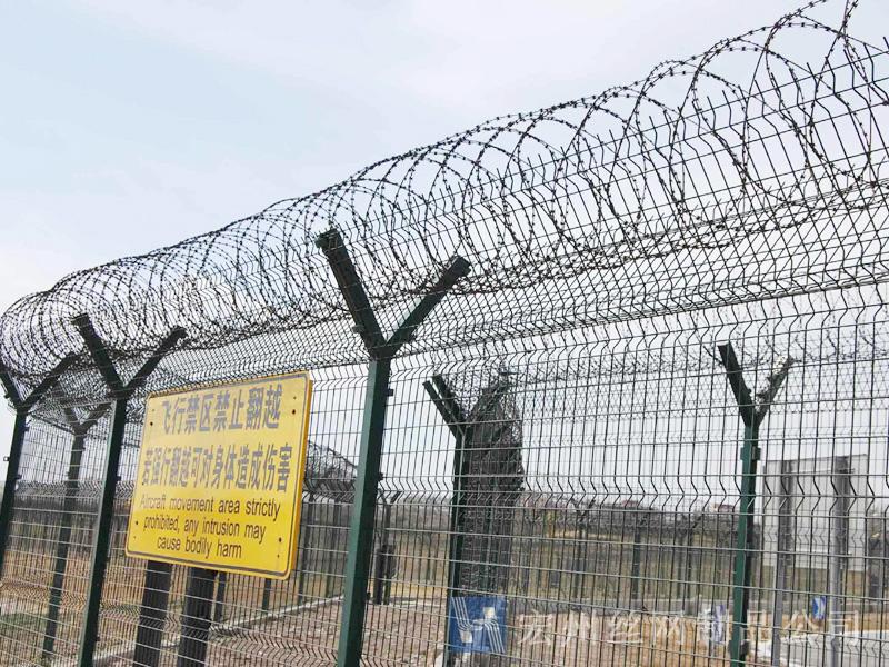 機場鐵絲圍欄網(wǎng)產(chǎn)品具有:美觀、大方、防腐性好、易保養(yǎng)、防攀爬能力強。近年來,被廣泛應用在機場,軍事基地等高安全場所。注:假如在機場護欄網(wǎng)頂部加裝刀片刺絲、刀片刺繩后又很好的增強了安全防護機能。