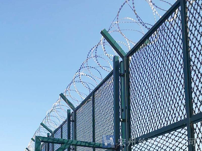 監(jiān)獄防護網(wǎng)又稱監(jiān)獄隔離網(wǎng)或監(jiān)獄隔離柵,山東監(jiān)獄隔離網(wǎng)產(chǎn)品由護欄網(wǎng)直接生產(chǎn)廠家--宏州護欄網(wǎng)廠生產(chǎn)提供,產(chǎn)品主要是采用高強度的刀片刺網(wǎng)與普通防護網(wǎng)的結合,由V型支架立拄,加強型焊接片網(wǎng),安全防盜連接件和刀片刺網(wǎng)組成.刀片刺網(wǎng)是一種新型防護網(wǎng),由銳利尖角鍍鋅鋼板或不銹鋼薄板做刀片,鋼絲做芯線組合而成的防護器材.監(jiān)獄刺網(wǎng)護欄可平地安裝,也可在圍墻上二次安裝,有效防止攀逃。