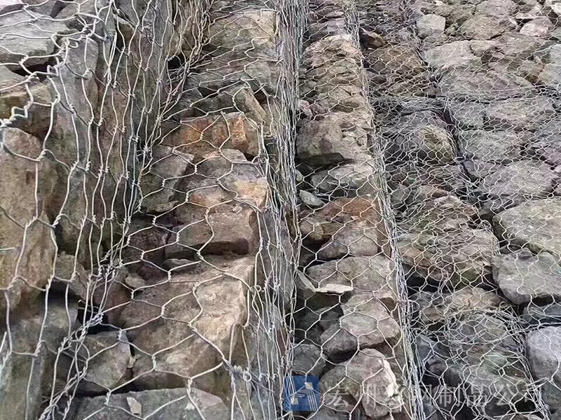 使用鋅鋁合金鋼絲編織成的網(wǎng)狀矩型網(wǎng)箱,其使用壽命在70-80年左右是普通鍍鋅層鋼絲的3倍。