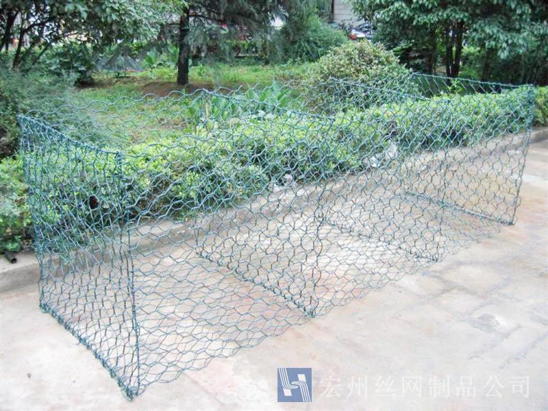 石籠網(wǎng)箱它是由重型六角網(wǎng)剪裁、折疊加工而成的鐵絲網(wǎng)箱籠,一般由4片重型六角網(wǎng)折疊組裝成的網(wǎng)箱,一片大的六角網(wǎng)折疊成長(zhǎng)方體的4個(gè)大面,兩頭有兩小片的六角網(wǎng),中間有隔板網(wǎng)片。